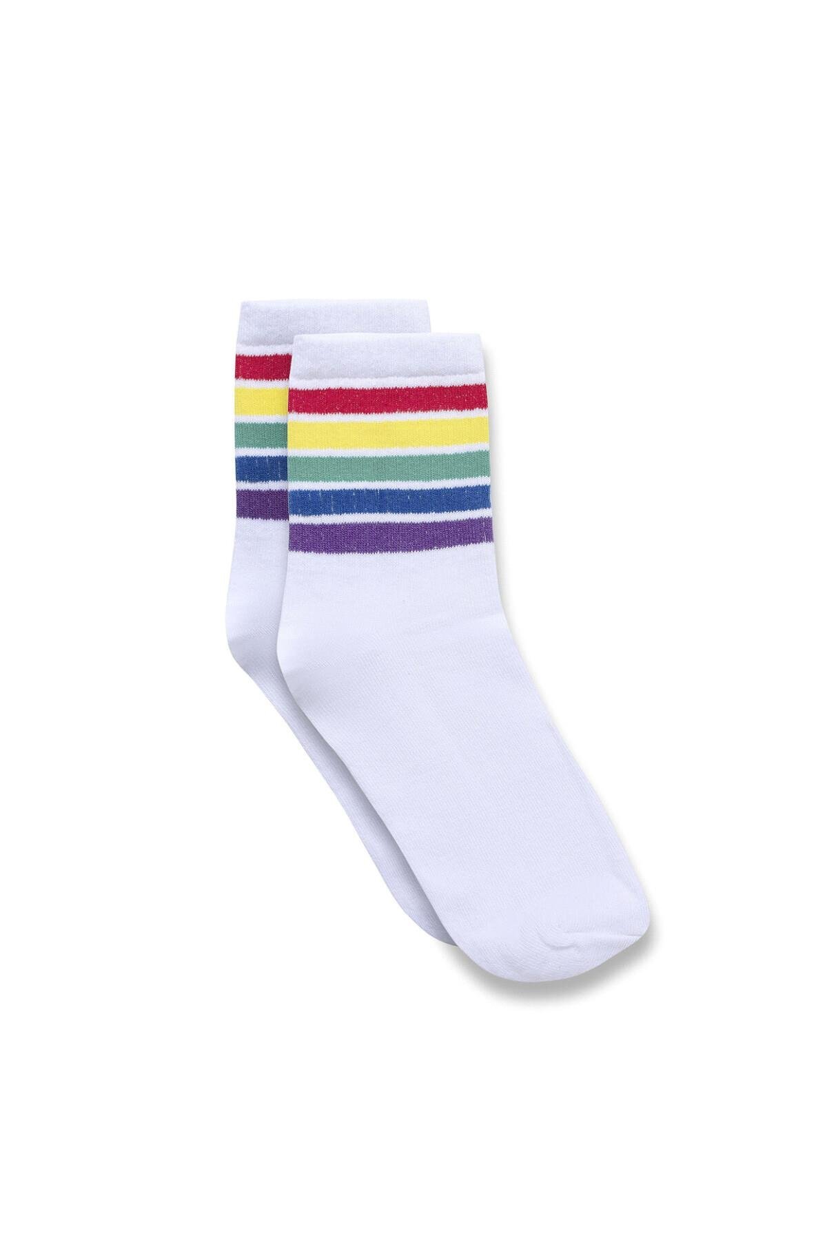 VAMOSCLO Şeritli Socket Çorap Beyaz Özellikleri