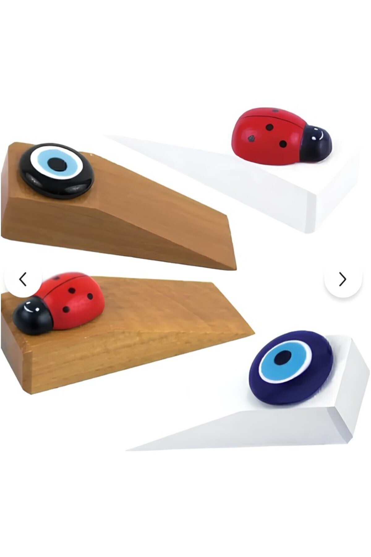 Vi Caro 1 Adet Kapı Stoperi - Ahşap Kapı Stoperi - El Yapımı Kapı Stoperi Kahverengi Beyaz