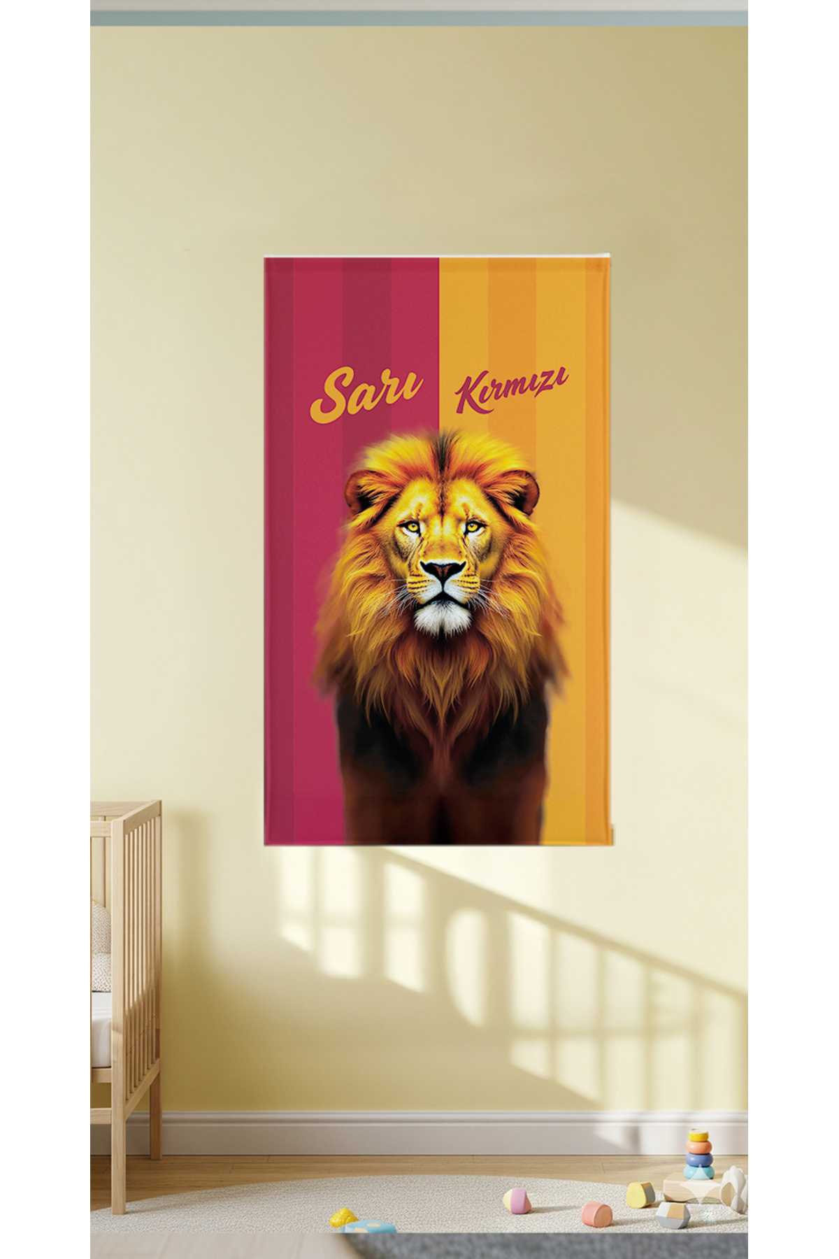 Via Loom Sarı Kırmızı Aslan Temalı Duvar Örtüsü Mikro İnce Kumaş 70x110cm Özellikleri