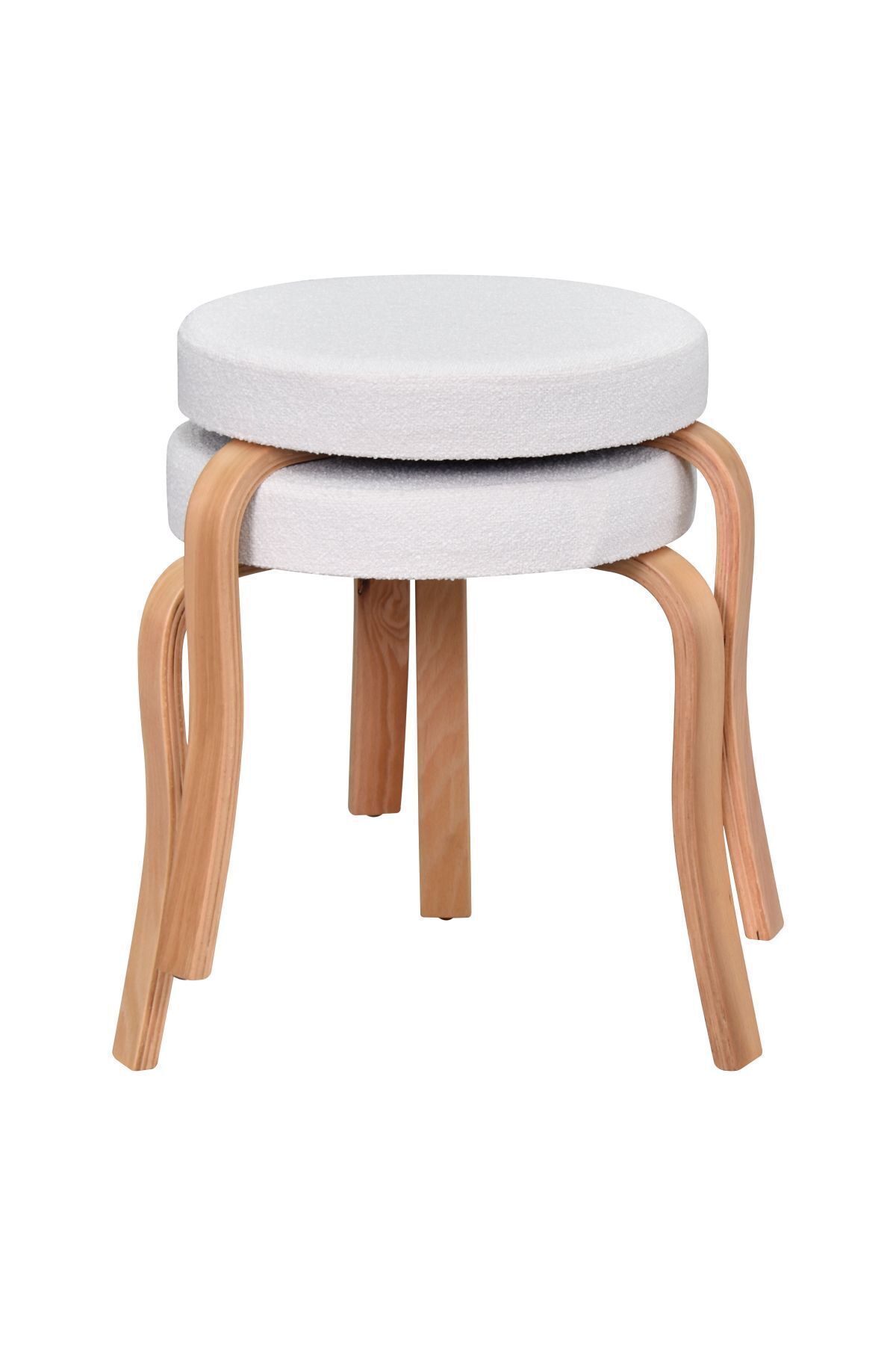 VİLİNZE Ege Teddy Kumaş Naturel Ahşap Ayak İstiflenebilir Mutfak-Balkon Taburesi (2 Adet)