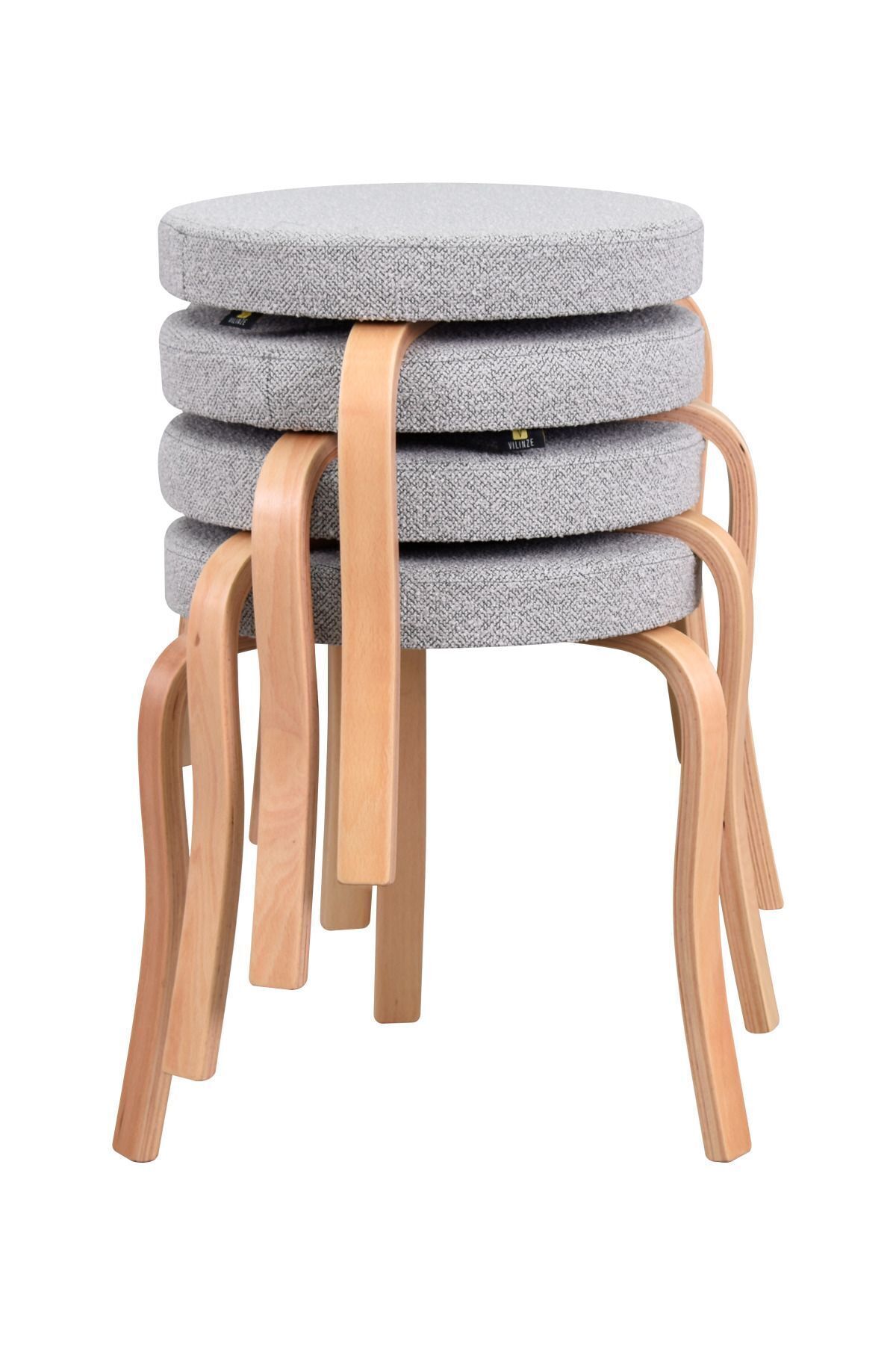 VİLİNZE Ege Teddy Kumaş Naturel Ahşap Ayak Istiflenebilir Mutfak-balkon Taburesi (4 ADET)