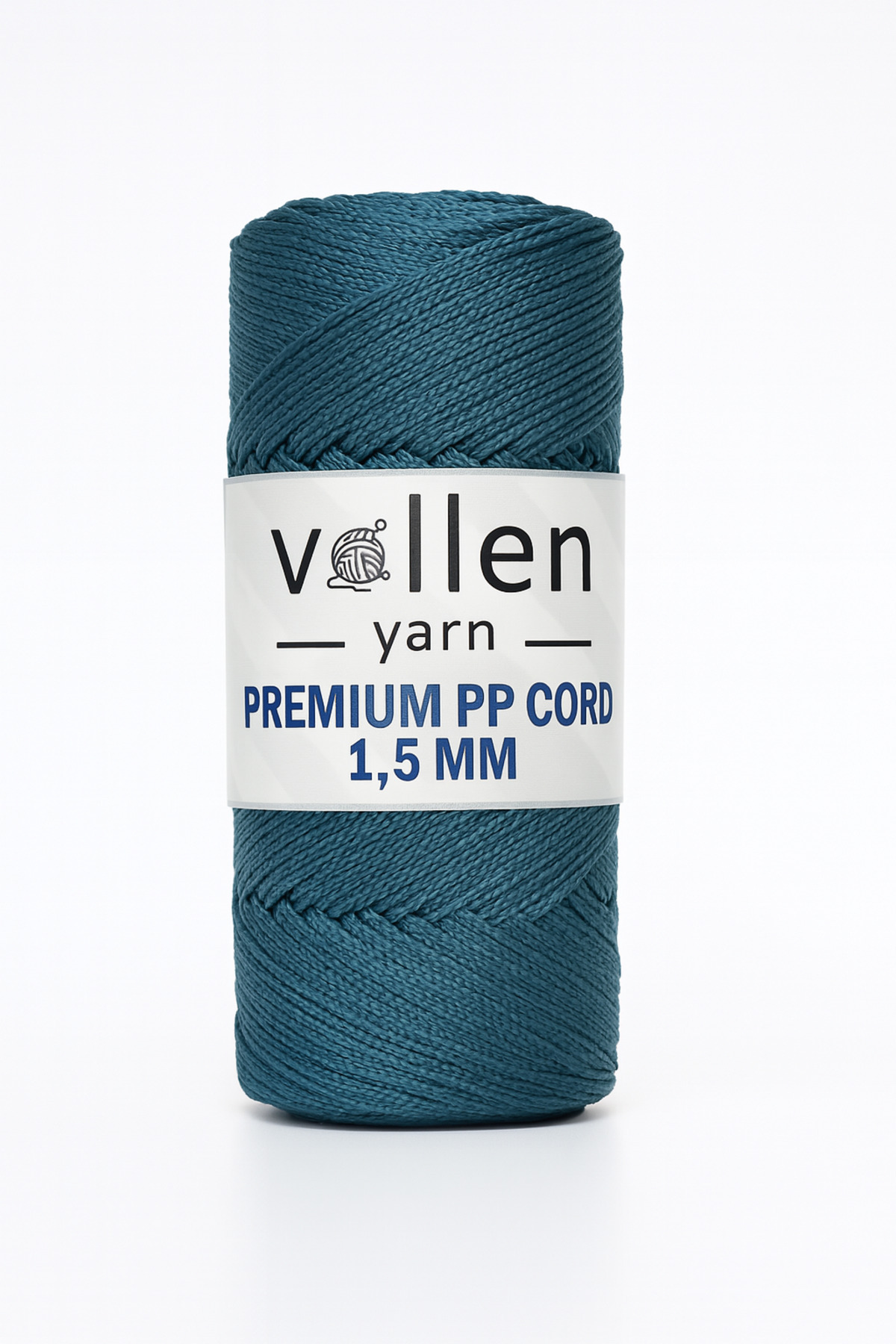 vollen yarn 1.5mm-150mt Polyester Makrome Ipi, Supla Ipi, Çanta Ipi, Bileklik Ipi, Makrame, Petrol Mavi Özellikleri