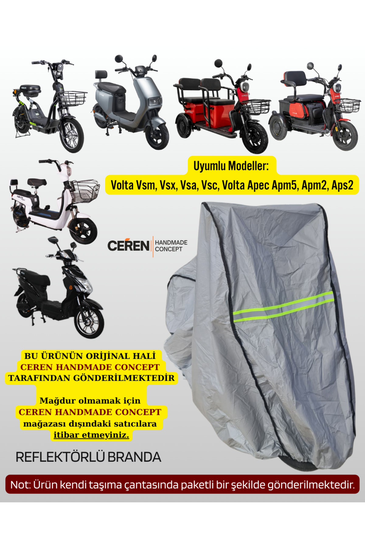 Volta Vsx, Vsa, Vsc, Apec Apm5, Apm2, Aps2 Uyumlu Reflektörlü Branda, Elektrikli Bisiklet Branda