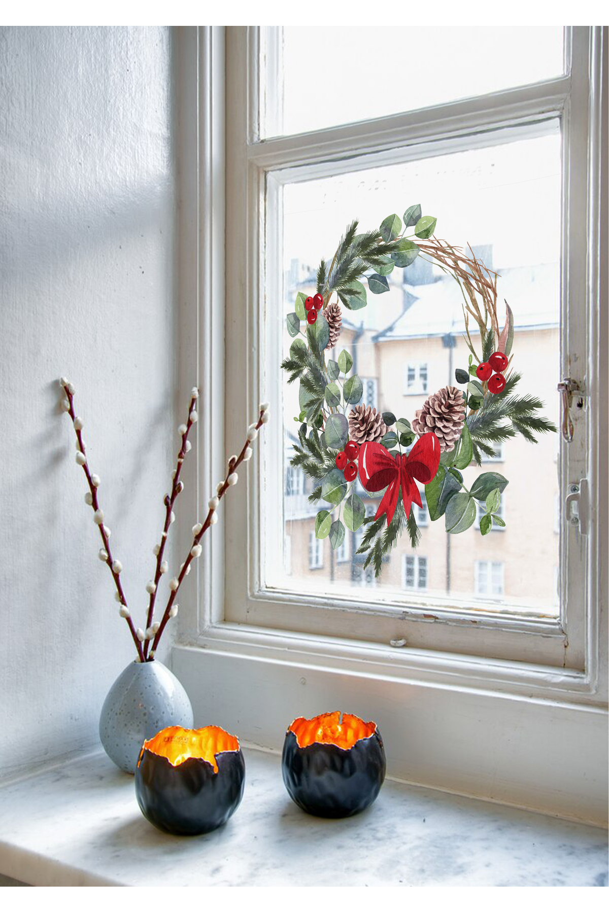 WALLHUMAN Yılbaşı Çelenk Cam Stickerı