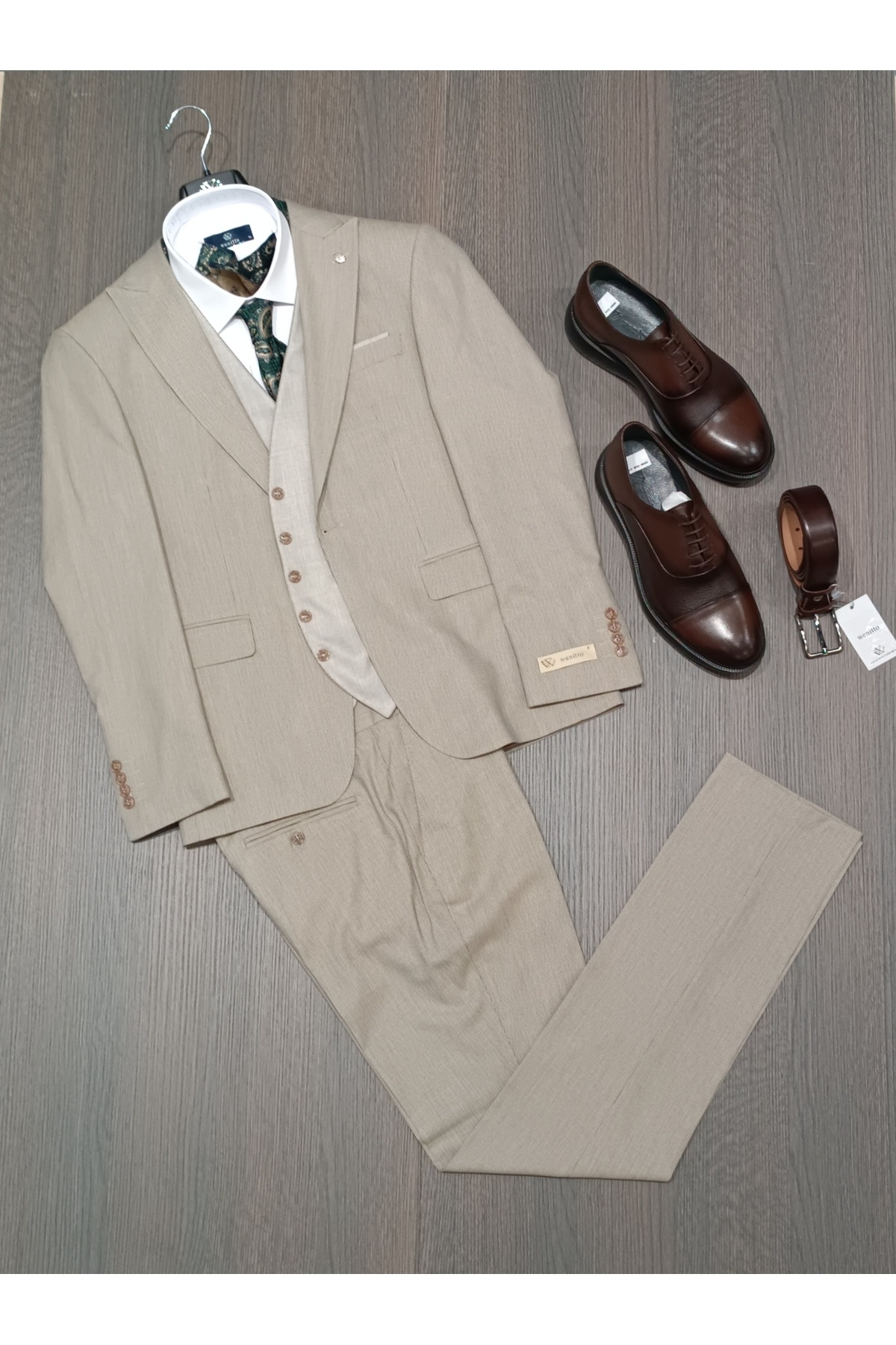 wenitto WENİTTO ÇİFT TARAFLI YELEKLİ BEJ TAKIM ELBİSE