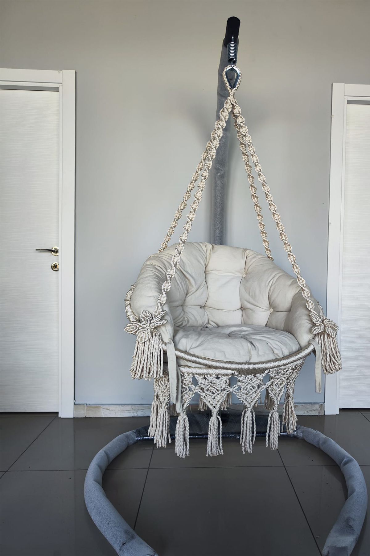WOODSHUT Tek Kişilik Makrome Salıncak Mindersiz (KREM)- %100 El Işçiliği - Mis38016MS