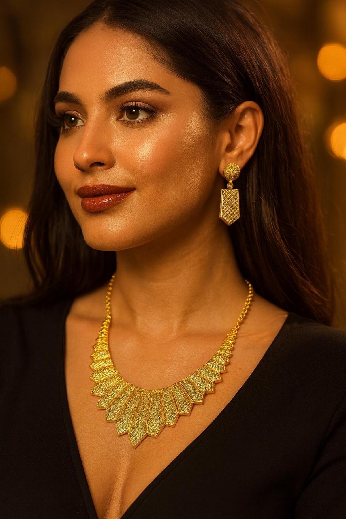xesha 22 Ayar Altın Kaplama Çok Şık Gerdanlık Seti Kolye ve Küpe Seti