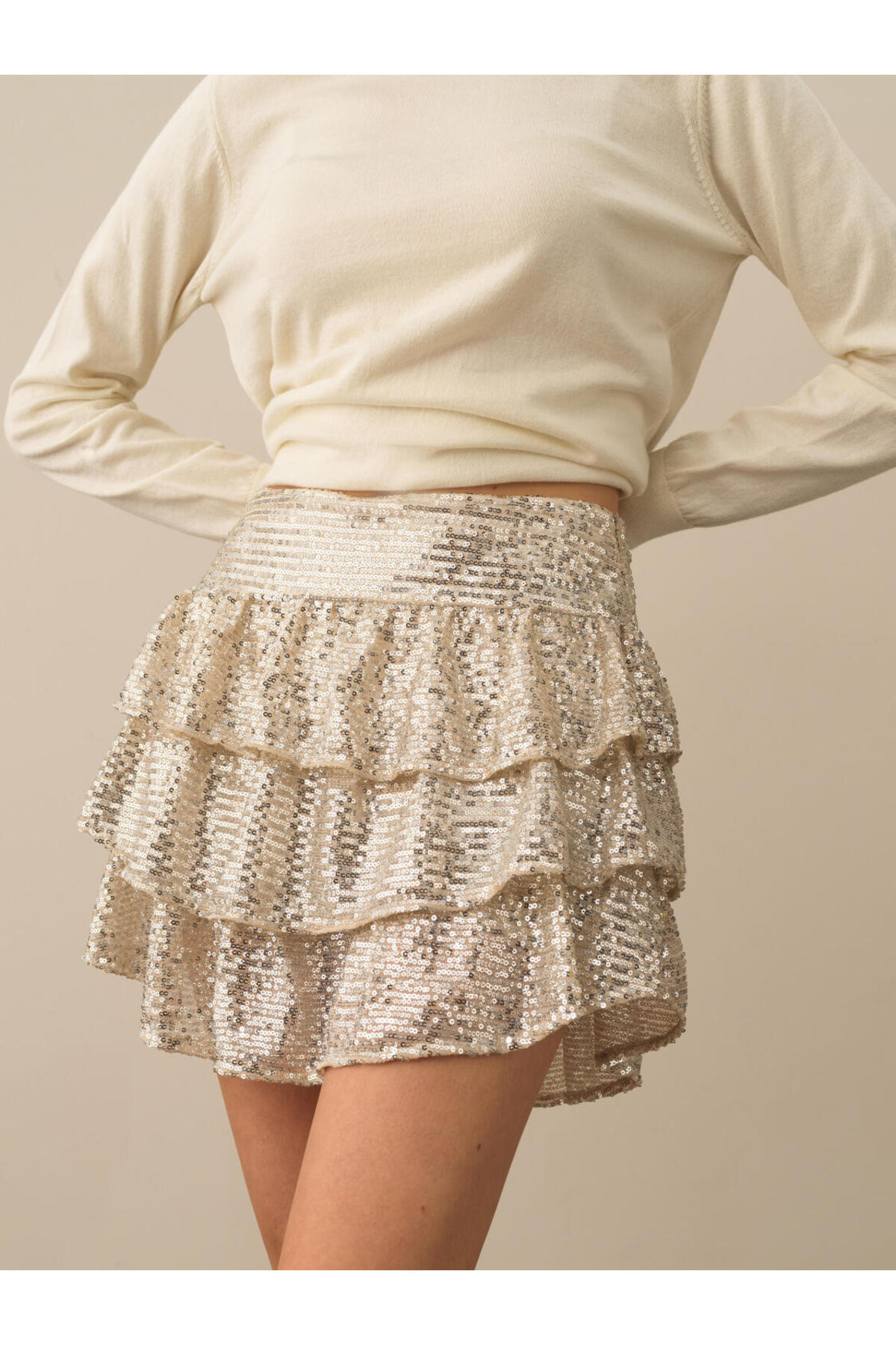 Xint Kadın Bej Regular Fit Pullu Şortlu Etek Özellikleri