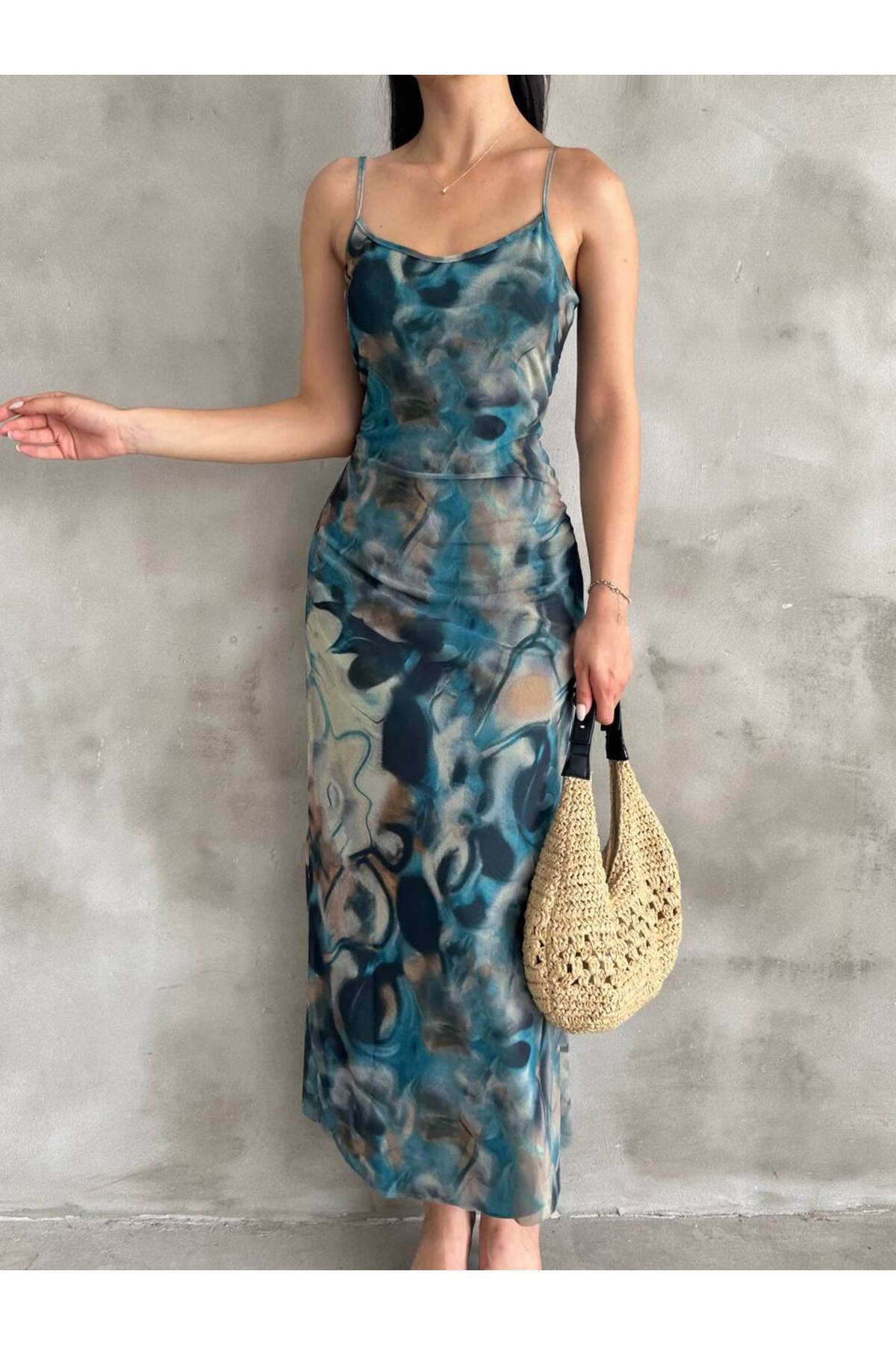 Xtrened Mavi Soyut Desenli Midi Elbise Özellikleri