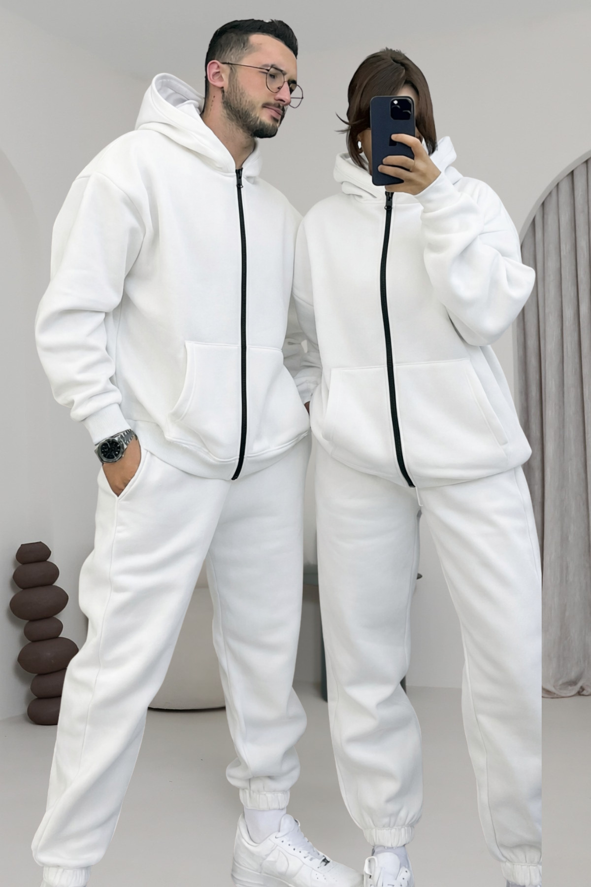 YAKAMEL Çiftlere Özel Basic Oversize Kapşonlu Eşofman Takımı