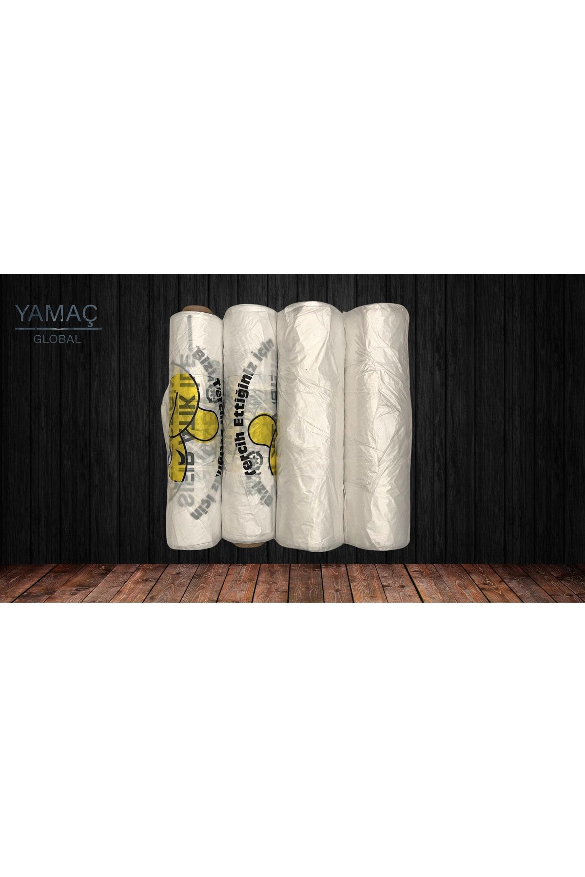 YAMAÇ GLOBAL 2 ADET Orta Boy Gülenyüz 2 ADET BASKISIZ Manav Poşeti Hışır Atlet Poşet Rulo Mat