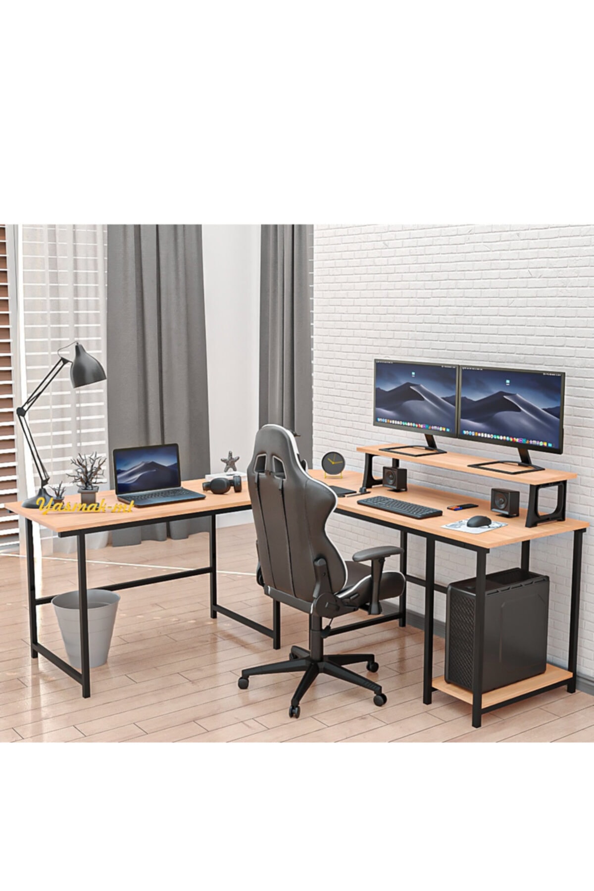 yasmak Ebru Açık Ceviz L Tipi Çalışma Oyun Masası 250e