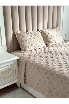 Odamoda Eva Çift Kişilik Pike Yatak Örtüsü Takımı BEJ - Pamuklu Fırfırlı Günlük Örtü Seti -Şık Kutu ve Paket