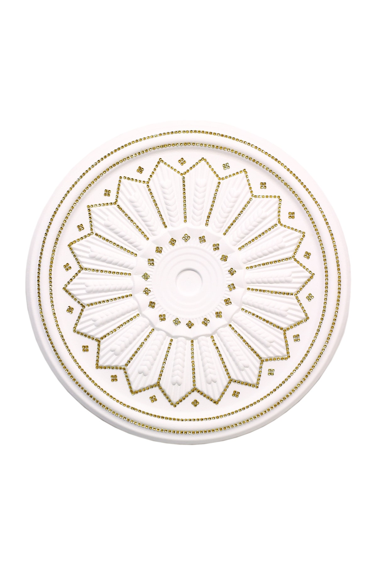 yeditepe osmanlı BAŞAK Desenli Stropiyer Taşlı Tavan Lamba Göbeği -Altın Sarı Renk-40 cm