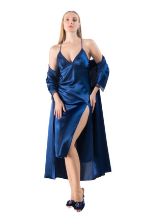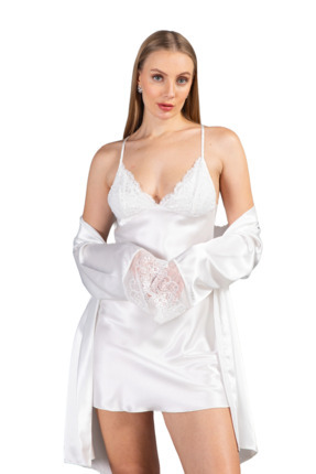 - Dantel sabahlık ile bütünleştirilmiş yeşil gecelikler