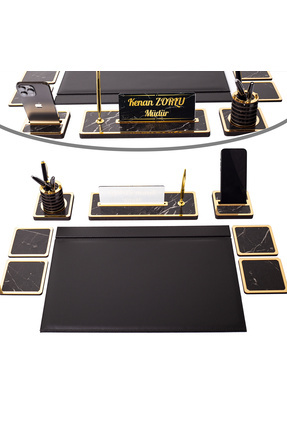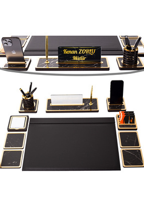 Güner Ofis Lüks Deri Sümen Takımı 12 Parça Ofis ve Makam Masası Seti