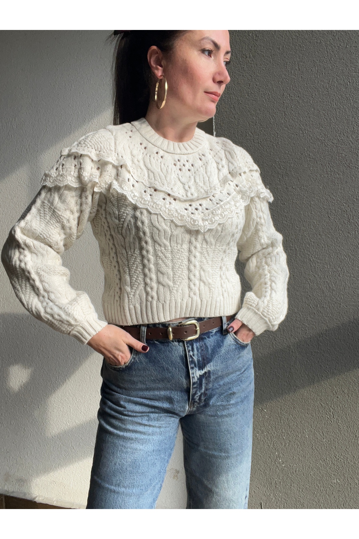 YEŞİMALSANÇOĞLU Dantel detay kazak