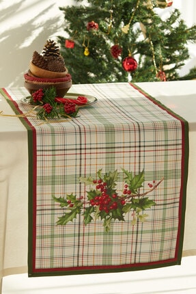 desen izmir Amerikan Servis, 130 X 280 Yeşil Masa Örtüsü,Yılbaşı Masası,Christmas