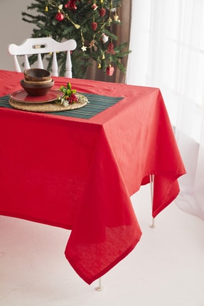 Soft Kare Panama Keteni Sıvı Geçirmez Kırmızı Renk Yılbaşı Masa Örtüsü