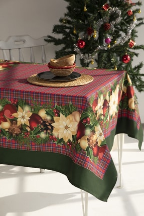 Çt Çeyizci Tekstil Yılbaşı Desenli Masa Örtüsü, Noel Masa Örtüsü, Dijital Christmas Noel Masa Örtüsü 120x160cm