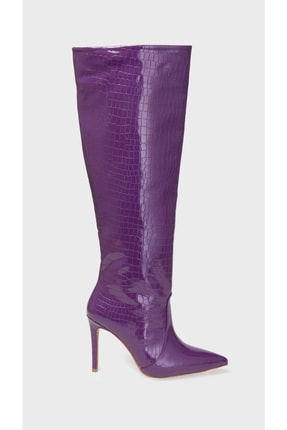 Ayakkabı Ateşi Siyah Rugan Platform Tasarım Kadın Çizme Orta Topuklu Ayakkabı Space