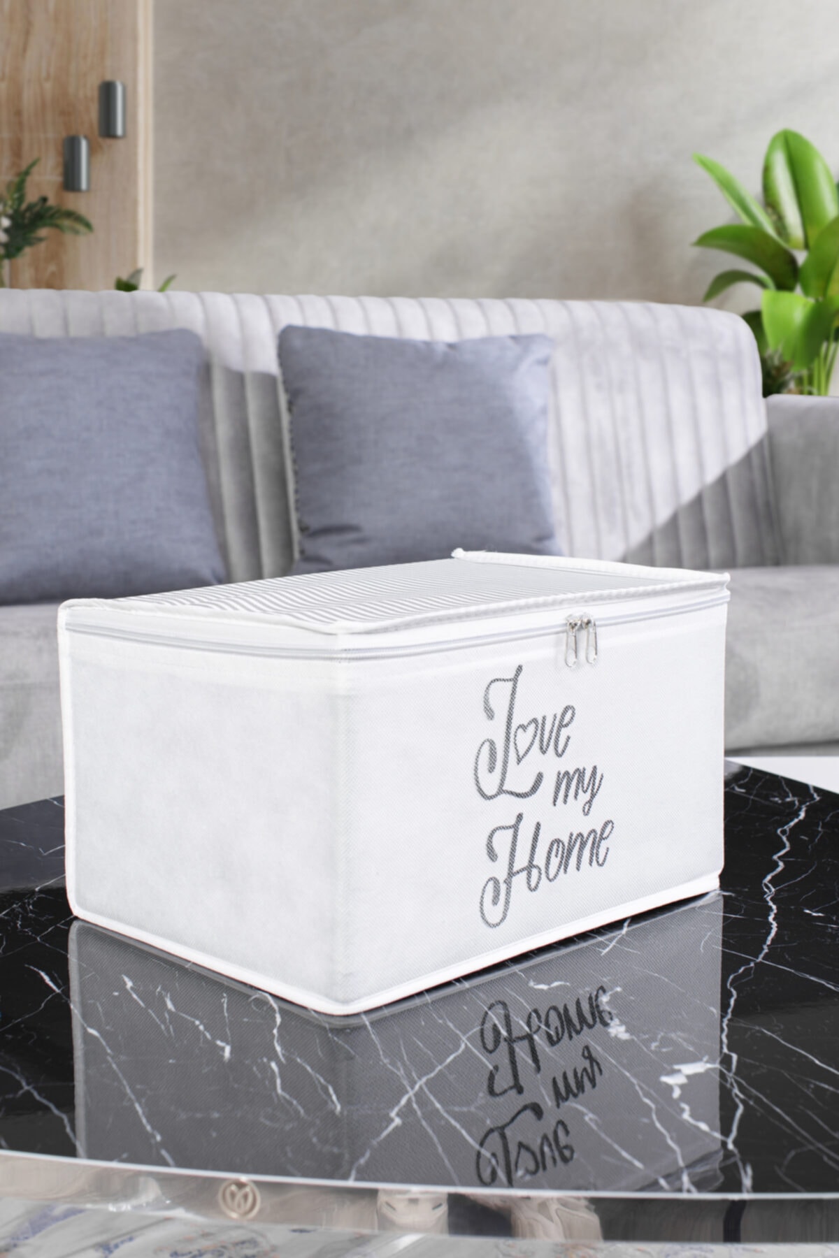 YUNUSOĞLU HOME Mini Boy Gri Çizgili Baskı Detaylı Hurç