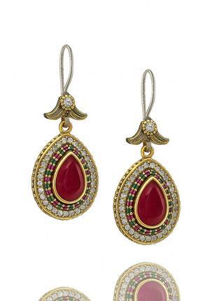 kolbi Kuzey Yıldızı Kolye - Kırmızı Mineli Gümüş Renk Klasik Zincirli