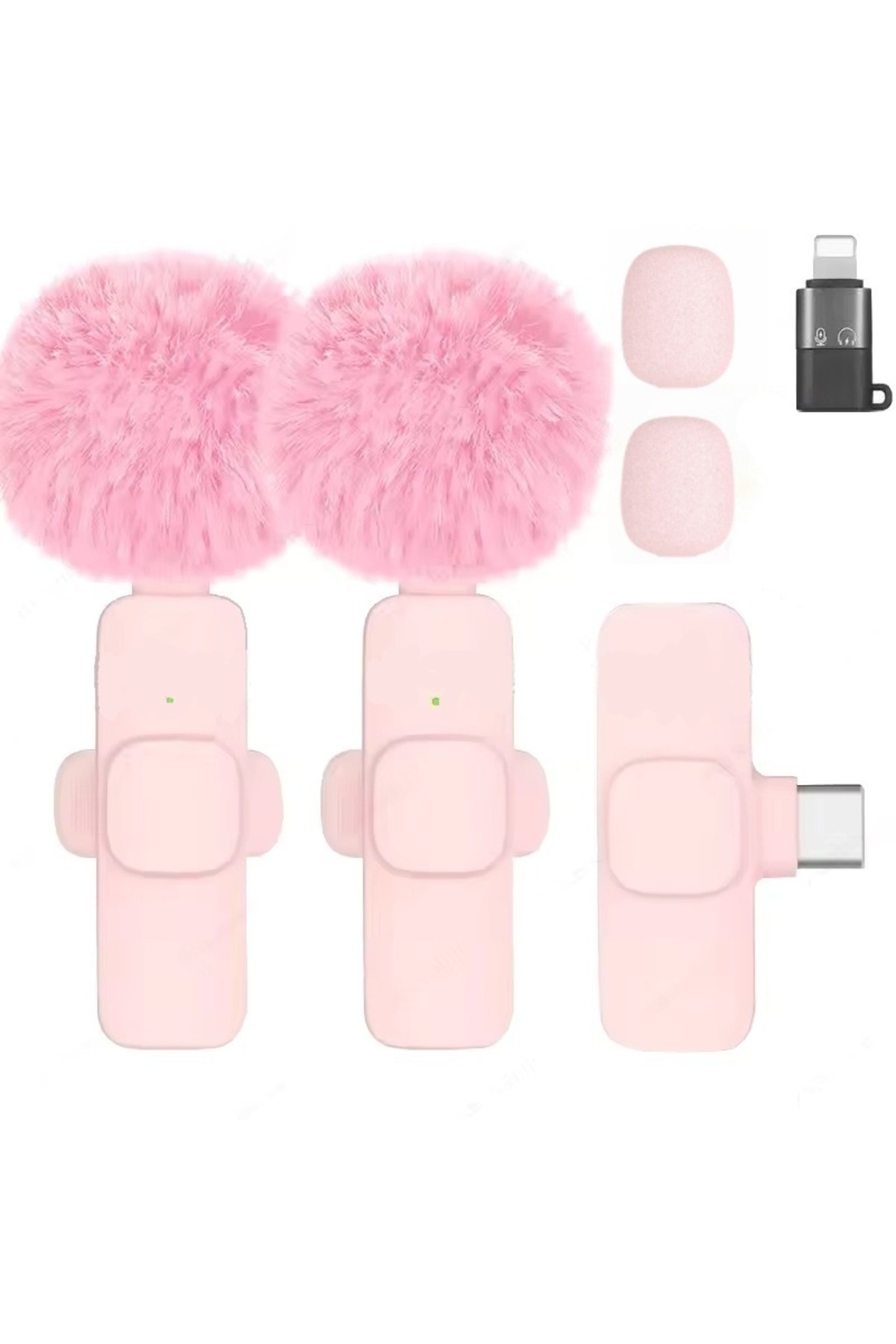 Zilvana Kablosuz Tüylü Pembe Yaka Mikrofonu Type-C ve Apple Girişli 2’li Set Bluetooth 5.0