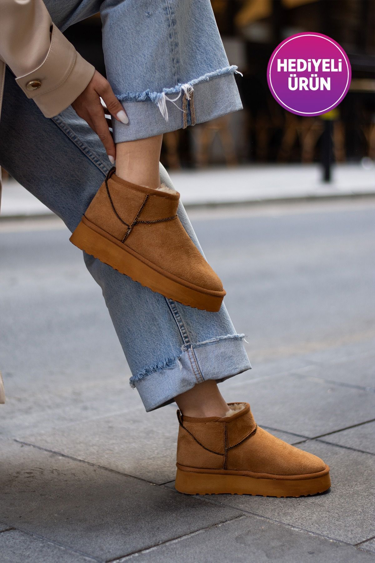 Zintra Kadın Süet Mini Taba Renk Bot – İç Kürklü, Kalın Tabanlı Bilekte Şık Bot Özellikleri
