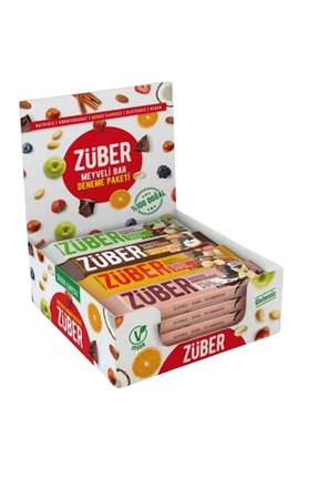 Züber içindekiler itibarıyla sağlıklı ürünleri üreten bir marka olmakla birlikte besleyici ve doğal lif kaynağı besinleriyle öne çıkmaktadır. Her yaştan insanın tüketebileceği özellikte olan bu ürünler, düşük kalorili olmasının yanında koruyucu ve katkı maddesi içermiyor oluşuyla sağlıklı gıdalar tüketmenizi sağlıyor. Diyet yaparken ya da sağlıklı beslenmek istediğinizde tercih sebebiniz olabilecek bu ürünler, aynı zamanda lezzetiyle de memnun edici bir durum ortaya koymaktadır. İsterseniz öğün olarak isterseniz, gün içerisinde çay, kahve yanında atıştırmalık olarak tüketin, verdiği keyfi her türlü hissedebileceksiniz. Züber içerik olarak tüm ürünleri için geçerli olan bazı ortak üretimler yapmaktadır. Ürünlerinin hiçbirinde trans yağ, ilave şeker, katkı maddeleri, hayvansal yağ ve gıdalar bulunmamakta olup, gluten ve laktozsuz oluşlarıyla da bu hassasiyete sahip olanlar tarafından tercih edilebilir ürünler ortaya koymaktadır. Vegan ve vejeteryan beslenme için de bütün ürünleri uygundur. Sağlık testlerinden başarı ile geçmiş olan bu ürünleri güvenle tüketebilirsiniz. Her damak zevkine göre pek çok ürünü için alternatifler bulunmakta olup, sevdiğiniz meyveleri ya da kuruyemişleri bulabilmeniz mümkündür. Züber meyve topu ürününün içerisinde Antep fıstığı kaplı, kakaolu fındık ezmeli meyve topu, fındık kaplı, fıstık ezmeli meyve topu ve Hindistan cevizi kaplı, kakaolu fındık ezmeli meyve topu gibi çeşitler bulunmaktadır. İlave şekersiz ve düşük kalorili bu ürünlerden dilediğinizi tercih ederek, sağlıklı atıştırmalıkların keyfini çıkarabilirsiniz. Züber ürünleri gün içerisinde yanınızda bulundurarak, gün içerisindeki açlık hissinizi bastırmaya yardımcı oluyor. Dilerseniz seyahate çıkarken, kampa giderken, acil durumlar için yanınızda bulundurabileceğiniz bu yüksek lif içeren gıdalar, besleyici özelliği sayesinde sizi zor durumlara karşı da koruyor. Paket halinde alabileceğiniz çoklu seçeneklerle birlikte, dilerseniz tek tek de satın alma imkânınız bulunmaktadır. Yüksek besin değerleri ve vitamin içeriği sayesinde bağışıklık sisteminizi de güçlendirmeye yarayan bu ürünler, kaliteli ham maddelerden üretilmektedir. Cildin esnek bir şekilde kalması, beslenmesi için kolajen serisi ürünlerini kullanabilir ve cilt sağlığınızı koruyabilirsiniz. Herkesin damak zevki farklıdır, sevdiği meyve ve kuruyemişler de farklılık gösterebilmektedir. Marka, ürettiği ürünlerde bu sebeple çeşitlilik yaratmaktadır. Züber fındıklı, fıstıklı, yer fıstıklı, çilekli, yulaf bar gibi birbirinden lezzetli ve sağlıklı seçenekler içerisinden, en sevdiğiniz lezzetleri bulabilir ve bu şekilde satın alabilirsiniz.