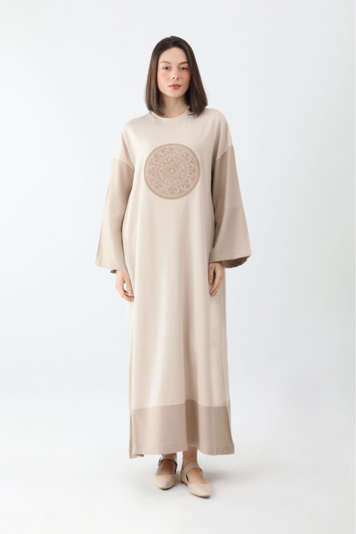 ZÜLAYS Nakışlı Sweat Elbise Taş