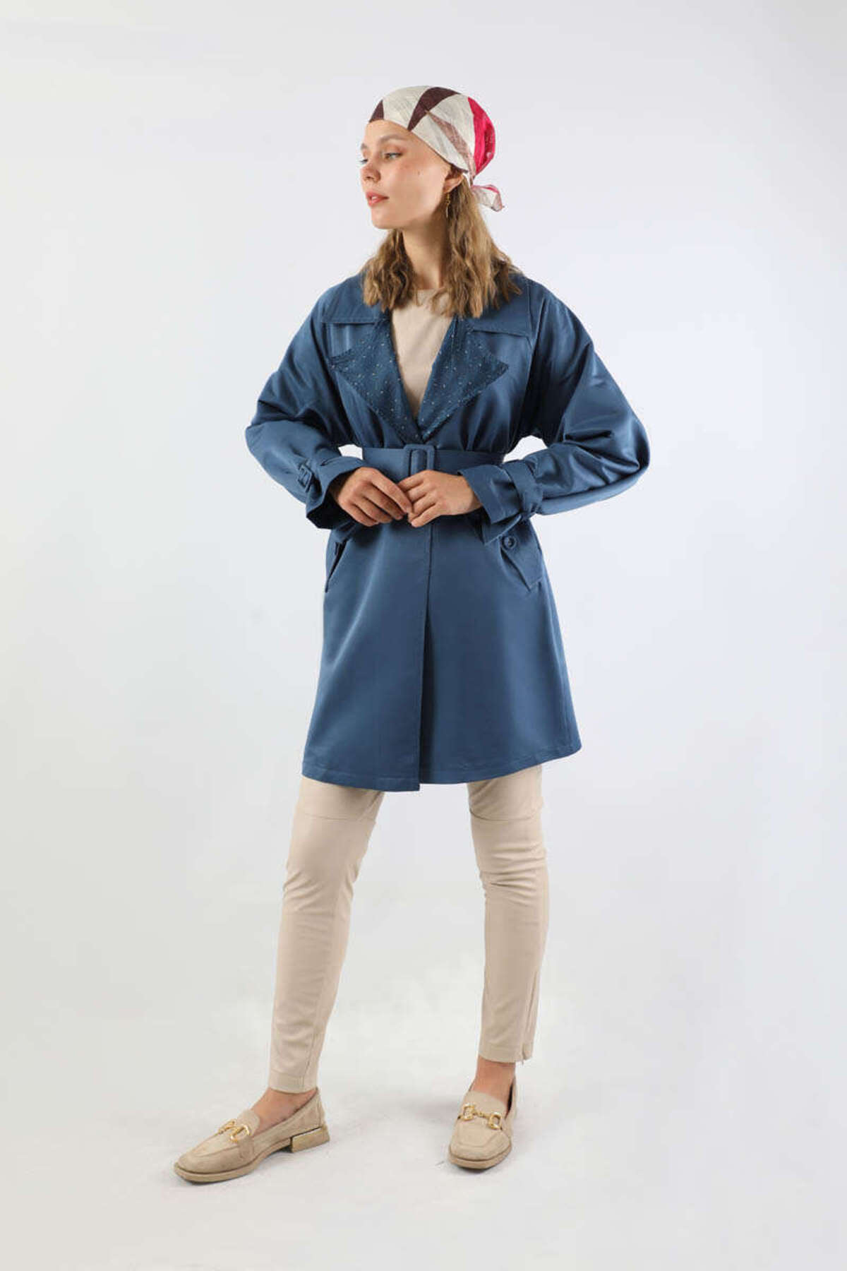 ZÜLAYS Yakası Desenli Midi Trençkot İndigo Özellikleri